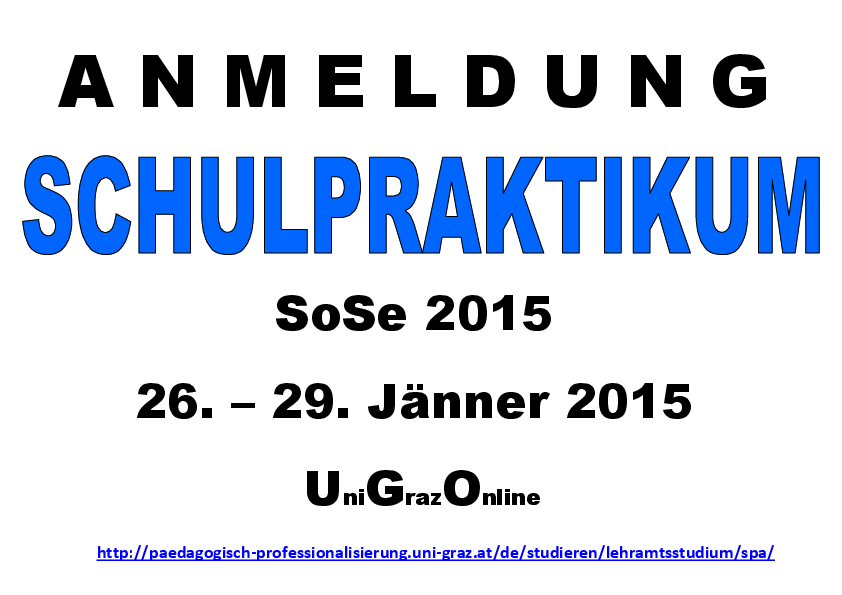 Universität Graz Umwelt-, Regional- und Bildungswissenschaften Institut für Bewegungswissenschaften, Sport und Gesundheit Neuigkeiten Anmeldung SCHULPRAKTIKUM SS2015