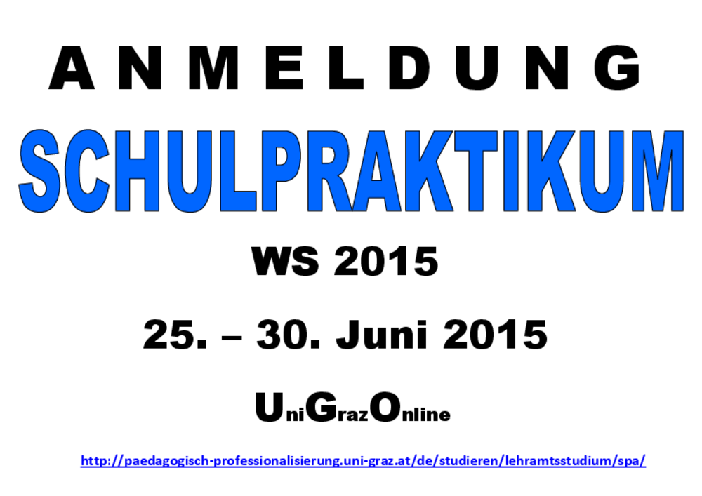 Anmeldung - Schulpraktikum WS 2015 - 25.06.2015 bis 30.06.2015