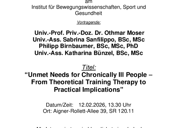 Universität Graz Umwelt-, Regional- und Bildungswissenschaften Institut für Bewegungswissenschaften, Sport und Gesundheit Neuigkeiten Einladung zum Institutsseminar Februar 2026