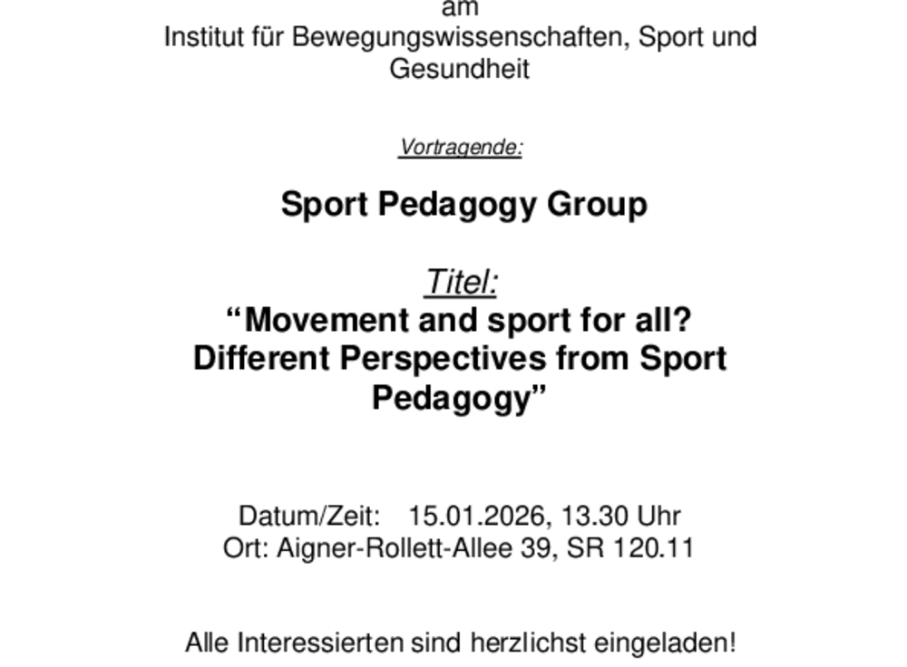 Universität Graz Umwelt-, Regional- und Bildungswissenschaften Institut für Bewegungswissenschaften, Sport und Gesundheit Neuigkeiten Einladung zum Institutsseminar Jänner 2026