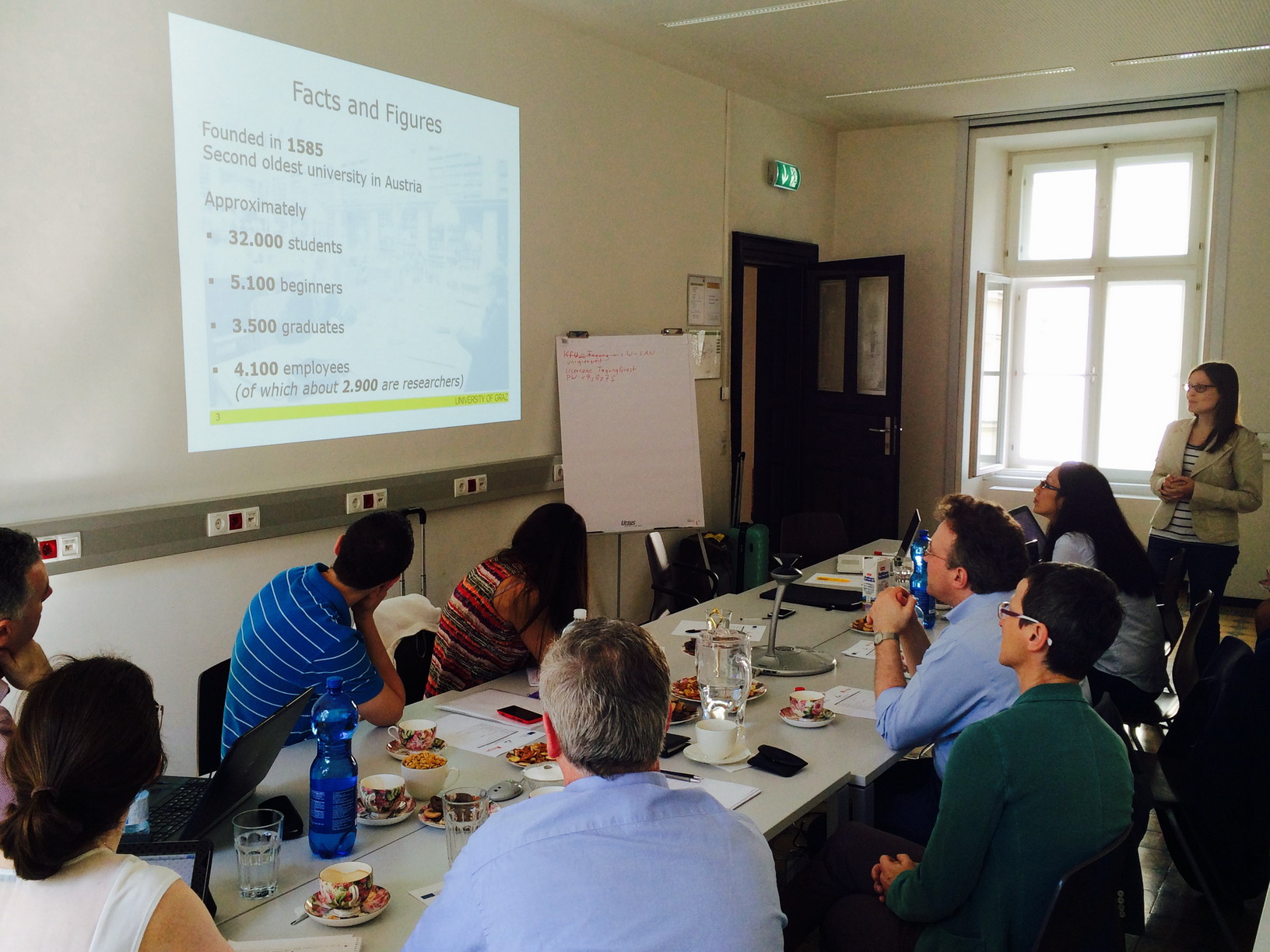Im Rahmen des EU-Projektes DELAROSE (Delivering E Learning Accreditation to Reduce Occupational Stress in Employment) tagte am 8. Mai das internationale Projektteam in Graz. Ein zentrales Ziel des Projektes ist es, einen E-Learning Universitätskurs für MitarbeiterInnen aus Gesundheits- und Sozialberufen zum Thema "Stressmanagement am Arbeitsplatz" zu entwickeln und in Englischer, Deutscher und Italienischer Sprache anzubieten.