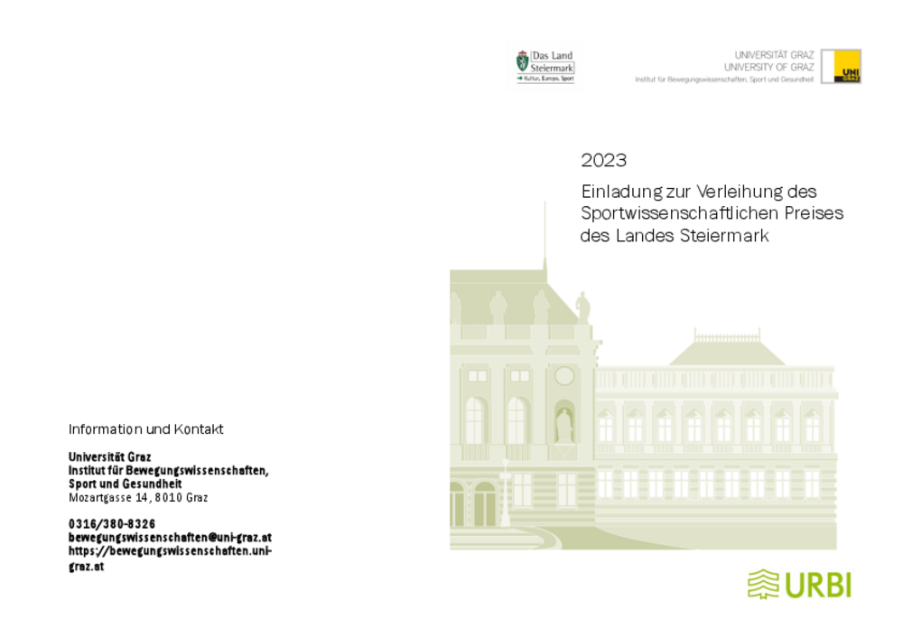 Einladung zur Verleihung des Sportwissenschaftlichen Preises des Landes Steiermark 2023